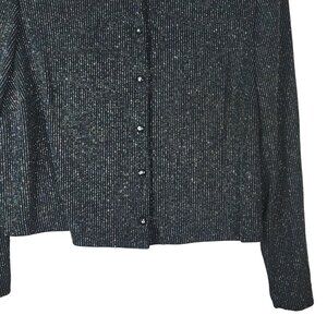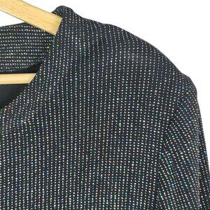 Ronni Nicole II By Ouida Black Glitter Top Jacket Button Multicolor Sparkle Long Sleeves Round Neck No Collar Shoulder Pads Vintage. Excellent pre-owned condition with no stains or tears.