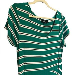 Ronni Nicole White and Green Casual A-Line Maxi Dress Size Large Jersey Striped