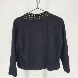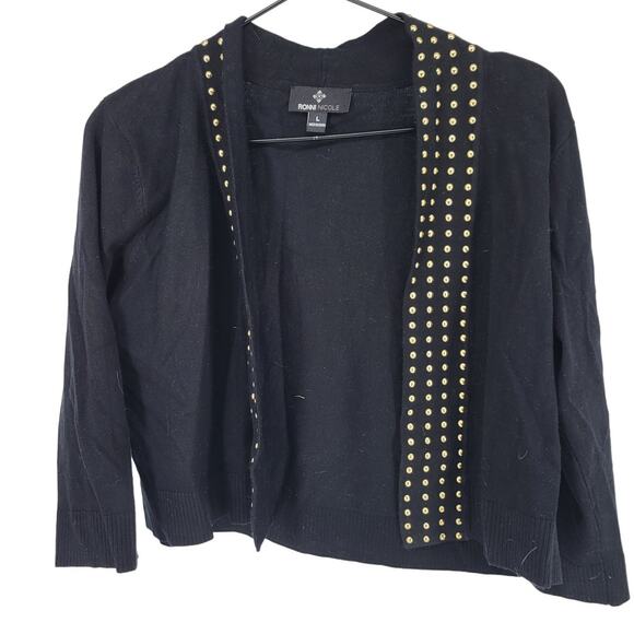 Ronni Nicole Womens Sz L Open Front Cardigan Sweater Black Gold Studded