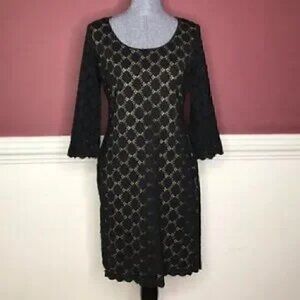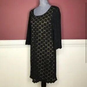 Elevate your style with this black and tan shift dress from Ronni Nicole.