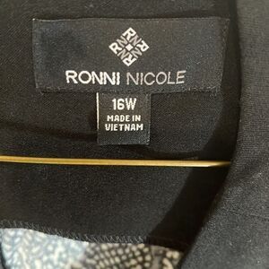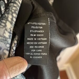 Excellent condition. Black dress with front l/back panel of snakeskin and black side panels. Zipper back. Size 16W. Approx measurements across chest 23” length 39”