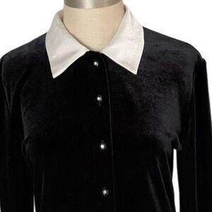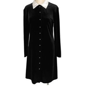 Ronnie Nicole Black Velvet Long Sleeve White Cuffs & Collar Gothic Dress
