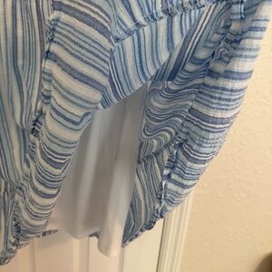 Ronnie Nicole Blue and White Striped Linen Sleeveless Dress Summer Boho Large