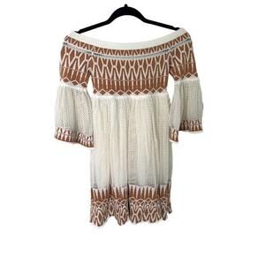 Ronny Kobo Adina Dress Ivory Brown Boho Crochet Bell Sleeve Size Small Festival
