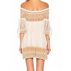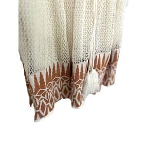 Ronny Kobo Adina Dress Ivory Brown Boho Crochet Bell Sleeve Size Small Mini Tassel
