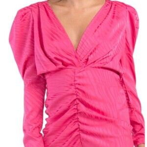 Ronny Kobo Astrid Zebra Print Gown hot pink Pink satin Party $568 Wedding holidays Size M V Neck ruched high low puff long sleeves see pictures for more details and accurate measurements