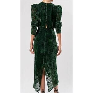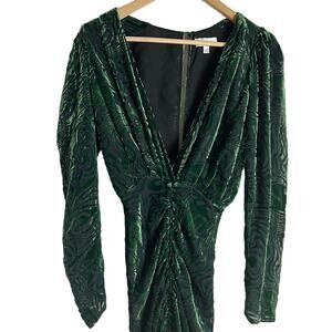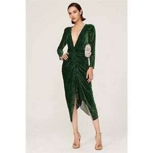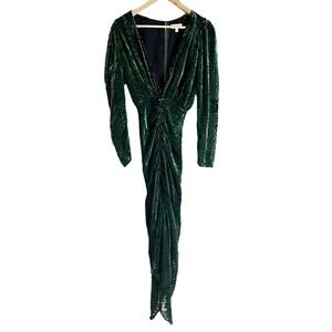 Ronny Kobo Astrid Green Animal Print Velvet Ruched Long Sleeve Midi Dress XS