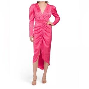 Ronny Kobo | Astrid Ruched Puffed Sleeve Midi Dress In Pink Tulip Size XS NWT