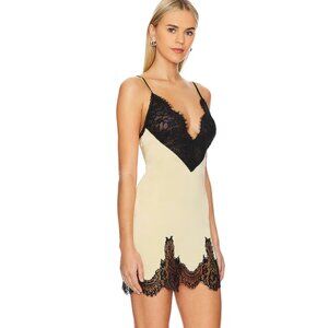 Ronny Kobo Ayesha Mini Dress in Buttercream Yellow & Black Satin Silk Large