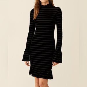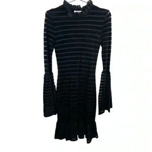 Ronny Kobo Black Velvet And Mesh Bell Sleeved Mini Bodycon Dress
