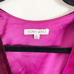 Ronny Kobo Carol Velvet V Neck Mini Dress Pink Cocktail Party Holiday Casual