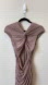 This exquisite brown gown from the Ronny Kobo Collection showcases a ruched design, cap sleeves, perfect for a cocktail night out. Sleeves can be styled different ways. The backless feature adds a touch of allure, while the flowing fabric ensures a graceful silhouette. Users say fits towards the smaller side. Has imperfections (see photos): thread pulls. Gently used condition.