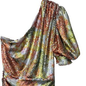 Ronny Kobo Eden Lined One Shoulder Sequin Ruched Mini Dress Multicolor Size XS