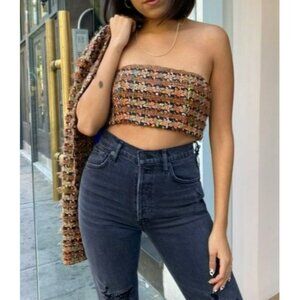 Ronny Kobo Lola Bouclé Bandeau Top XS Multicolor Tweed Crop Tube Top