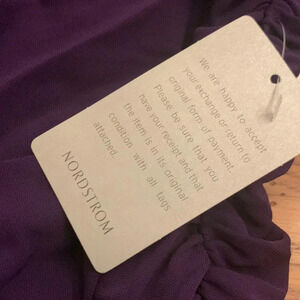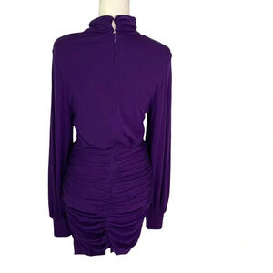 Ronny Kobo Harper Ruched Mini Dress with Balloon Sleeves Purple Eggplant S NWT