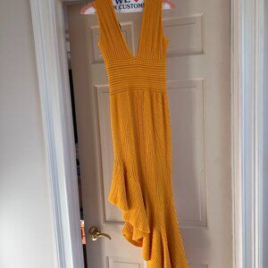 Perfect condition, worn once. Beautiful dress! Very flattering. Material is stretchy.