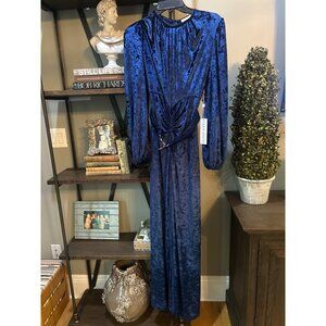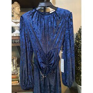 Ronny Kobo Korin Velvet Belted Dress Navy Womens Size Small