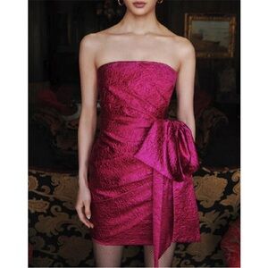 Fuchsia Ronny Kobo Carolayna strapless mini dress with bow accent at the side and concealed zip closure at back.