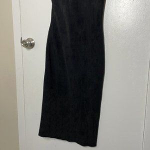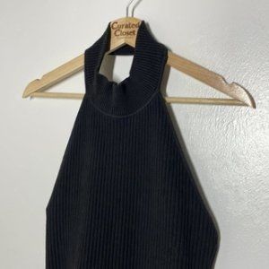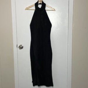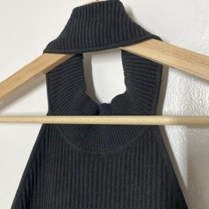 Ronny Kobo Mardelle Asymmetrical High Leg Slit Halter Black Ribbed Dress. size extra Large, excellent condition. Rib knit design, mock collar, slit front skirt. Material is a thick rib with stretch