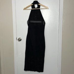 Ronny Kobo Mardelle Asymmetrical High Leg Slit Halter Black Ribbed Midi dress