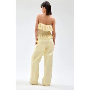 Rendered in a fresh, uplifting yellow tone, the Matteo Pant by Ronny Kobo combines modern tailoring with effortless sophistication. Cut from structured denim, these high-waisted trousers feature subtle pleats that enhance the clean straight-leg silhouette, offering a refined yet versatile finish perfect for day-to-night dressing.
