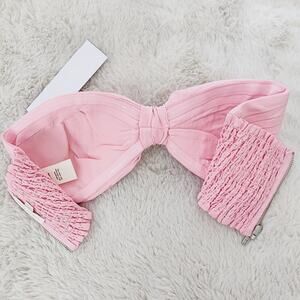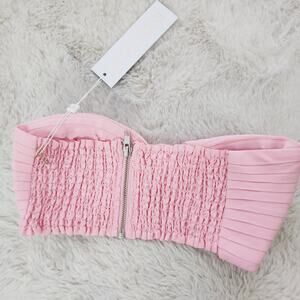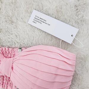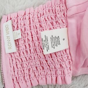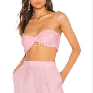Ronny Kobo Mayah Crop Top Petal Pink Linen Bandeau Knot Smocked Resort S Revolve