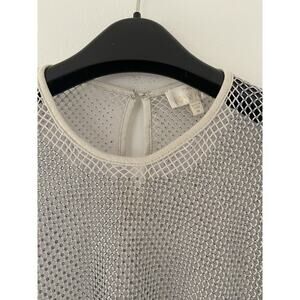 Ronny Kobo Mesh Top with Rhinestone Mesh Size Medium Siver Tan