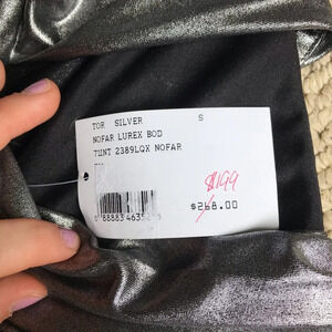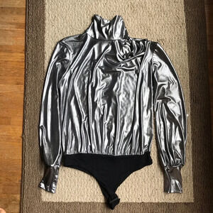 Ronny kobo intermix new with tags metallic silver turtleneck bodysuit. Great for going out or a party! Size small. Open back detailing.