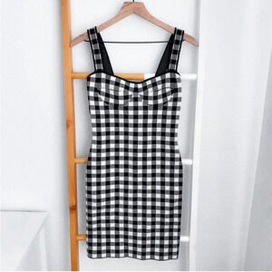 Ronny Kobo Midori Gingham Bodycon Mini Dress White Gray Checker Checked S