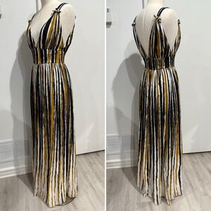 Ronny Kobo Multicolored Striped Sallee Maxi Dress in size Small. Fun and feminine with a v-neckline and flowy skirt. Printed crepe (98% Polyester, 2% Spandex). Maxi. Sleeveless. V-neckline. Zipper closure with hook and eye closure. 52" from shoulder to hemline. Great condition. No visible notable signs of wear or use. No flaws. Please refer to photos for exact details and condition.