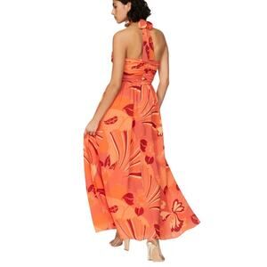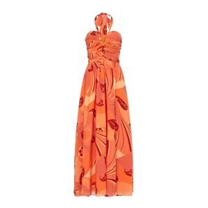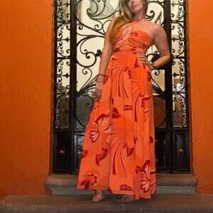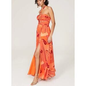 Ronny Kobo Orange Floral Halter Maxi Dress Size 6 Vacation Gown Designer $470