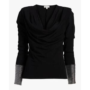 Ronny Kobo Sandra Black Rhinestone Sleeve Drape Blouse (S)