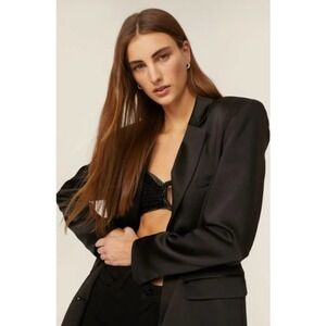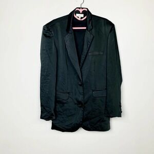 Ronny Kobo Satin Silk Tunic Single Breasted Alex Oversized Blazer Black Medium