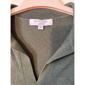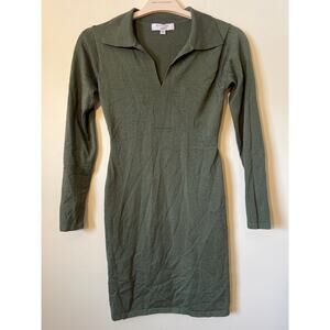 Ronny Kobo Sz XS Green Long Sleeve Polo Collar Sweater Mini Dress v-neck solid