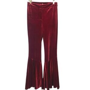 NWOT Torn by Ronny Kobo Velvet Flare Leg Bellbottom Retro boho Red Pants Small