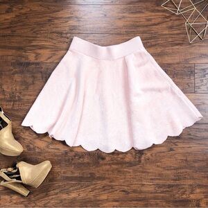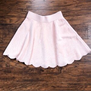 Fabulous mini skirt by Ronny Kobo Collection. “Vidette” skater skirt style in plush pink velour knit with wide elastic waistband and scalloped hem. Waist 26.5-28“, length approx 18“. Size S, excellent preowned condition.