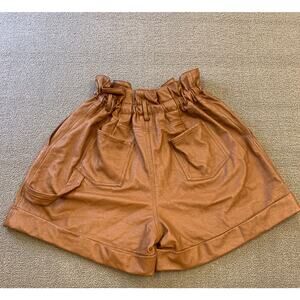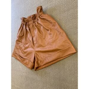 Ronny Kobo Women Large Brown Faux Leather Paperbag Shorts