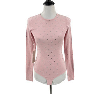 Ronny Kobo Womens Chani Bodysuit Ballet Pink Rhinestone Size Small