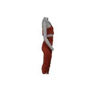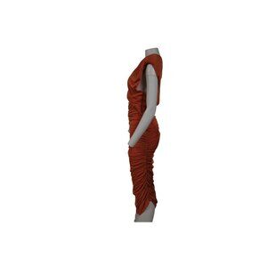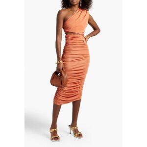 Ronny Kobo Womens Donna One Shoulder Ruched Midi Dress Small Peach Viscose
