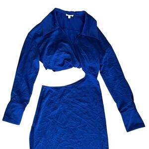 Tags- collared midi dress, contemporary midi dress, Bach party dress, homecoming dress, rush outfit, revolve midi dress, royal blue midi dress, college style, going out dress, game day outfit, museum date dress, date night dress, Rony kobo dress, Ronny kobo rannel dress, Ronny kobo Randell dress, Ronny kobo womens Ranell cobalt royal blue cerulean long sleeve wrap midi dress cutouts