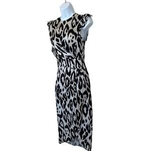 Ronny Kobo Zebra Print Ruched Silk Midi Dress Black White XS Work Designer $548