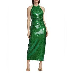 Ronny Kobo Alix Green Sequined Halter Midi Gown New Small