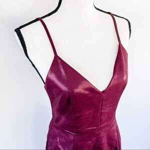Ronny Kobo Burgundy Mirabelle Metallic Vneck Fit Flare Mini Dress Sz S