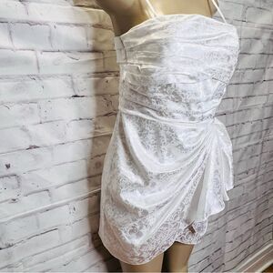Turn heads in this elegant floral jacquard minidress crafted in a gracefully pleated, draped silhouette for chic style.