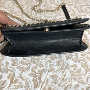 Length 8.5” Height 6.5” Ronora Saddle Bag Crossbody Handbag Chain Strap Black Vegan Suede Leather Gorgeous