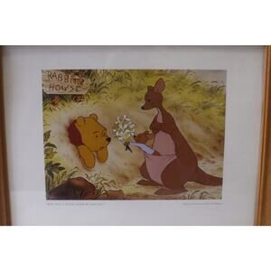 Add a touch of Disney magic to your home with the "Roo Has A Little Surprise For You" framed print. This adorable scene depicts Pooh getting stuck at Rabbit's house, guaranteed to bring smiles to any Disney fan's face. The high-quality print is beautifully framed with a glass cover, ready to hang on your wall and add a charming touch to any room. Don't miss out on this delightful piece of Disney decor!