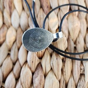 This necklace I made using the illustrations on pages of a discarded/damaged 1970s printing of 1928 book The House at Pooh Corner. It has a teardrop-shaped pendent showing the beloved kangroo character, Roo. Black cord length can be from 19" to 21.5". Moderately water resistant but do not submerge- not waterproof!