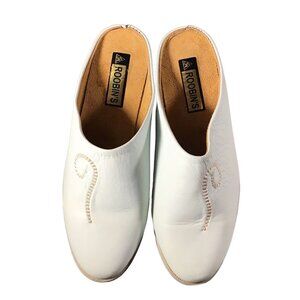 Roobin Leather Shoes 42 Round Toe Mint Green Embroidery Moroccan Slippers Loafer