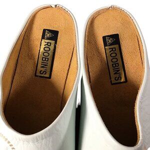 Roobin's mint green leather slippers are a comfortable and stylish addition to any wardrobe. The round toe and slip-on design make them easy to wear, while the embroidered accents add a touch of elegance. These loafers are perfect for travel, workwear, or casual occasions and can be worn in the summer, fall, or spring. The faux leather upper material is durable and easy to maintain. These shoes are available in US size 7 and AU size 5.5, with a standard shoe width.