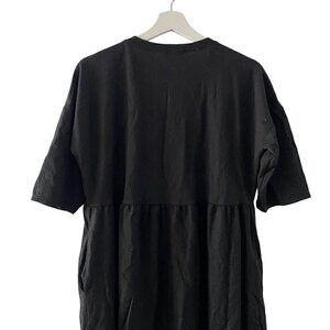 Roolee Black Empire Waist Midi Dress Black Knit Comfy Peasant Boho short sleeve